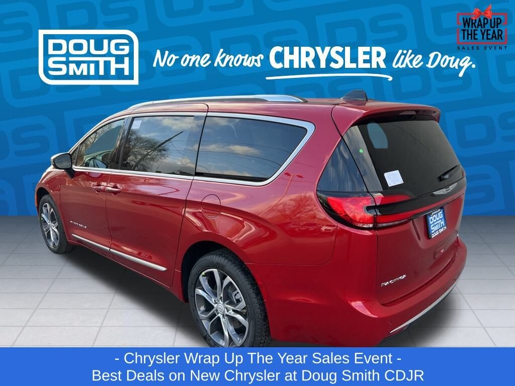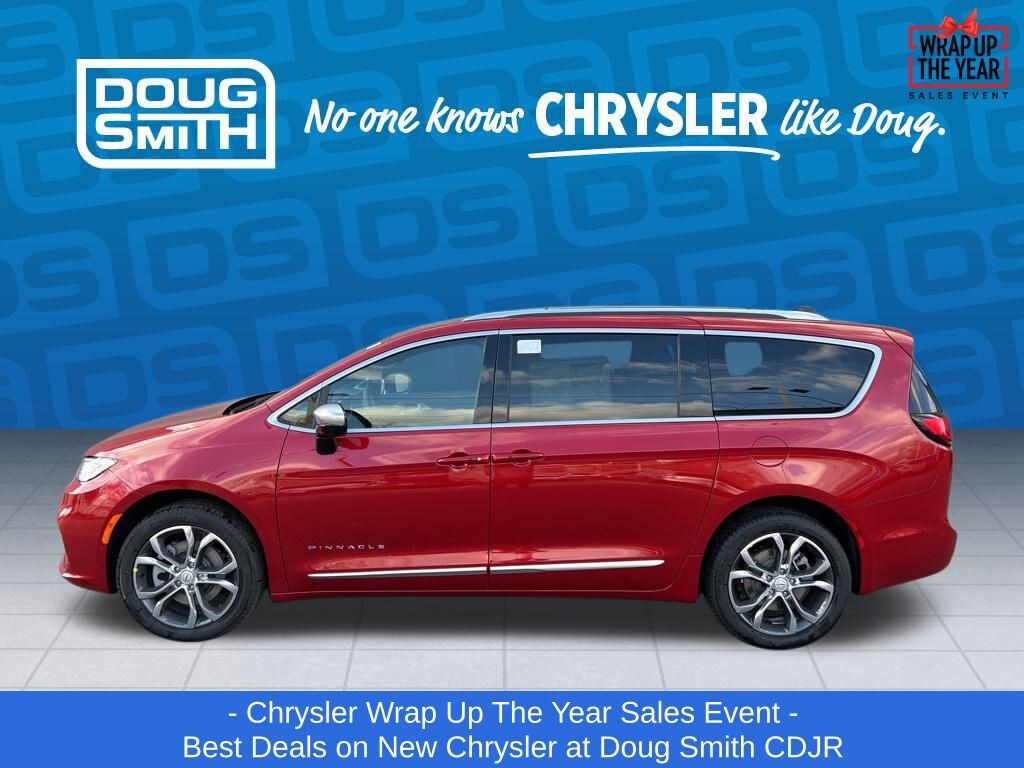 Red Hot Pearlcoat 2026 Chrysler Pacifica Pinnacle AWD 9-Speed 948TE Automatic 3.6L V6 24V VVT Price includes: $2750 - 2026 National Retail Bonus Cash . Exp. 01/05/2026 $750 - 2026 National Bonus Cash . Exp. 01/05/2026 - Sale Price Includes: $1,500 Trade-In Allowance Incentive Program for customers that trade in a 2015 or newer passenger vehicle with 100,000 miles or less. - Offer Exp. 01/05/2026 - See Doug Smith CDJR for full details. - Advertised Price reflects a $1,500 Financing Discount. To qualify for this discount, customer must secure credit approval and finance with a dealership lender. Cash purchases or outside financing will void the discount, increasing the final price by $1,500. Exp. 01/05/2026 - See Doug Smith CDJR for full details.