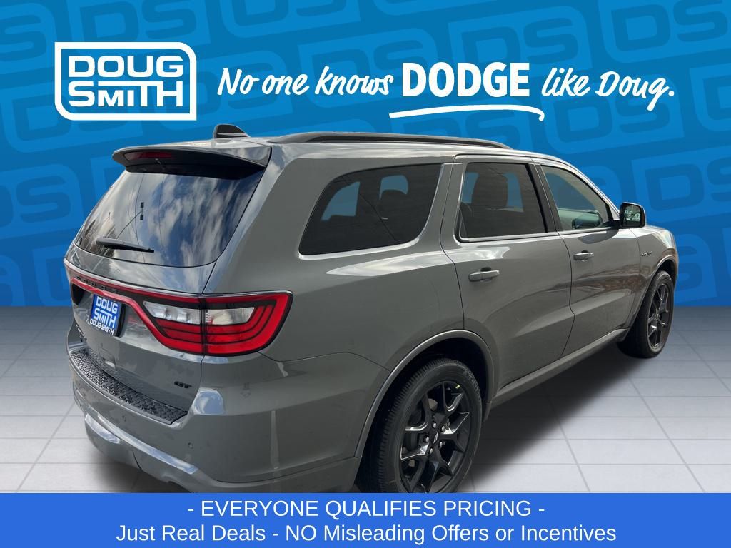 Destroyer Gray Clearcoat 2026 Dodge Durango GT HEMI V8 AWD 8-Speed Automatic HEMI 5.7L V8 Multi Displacement VVT AWD. Price includes: - Advertised Price reflects a $1,500 Financing Discount. To qualify for this discount, customer must secure credit approval and finance with a dealership lender. Cash purchases or outside financing will void the discount, increasing the final price by $1,500. Exp. 02/28/2026 - See Doug Smith CDJR for full details. - Sale Price Includes: $1,500 Trade-In Allowance Incentive Program for customers that trade in a 2015 or newer passenger vehicle with 100,000 miles or less. - Offer Exp. 02/28/2026 - See Doug Smith CDJR for full details.