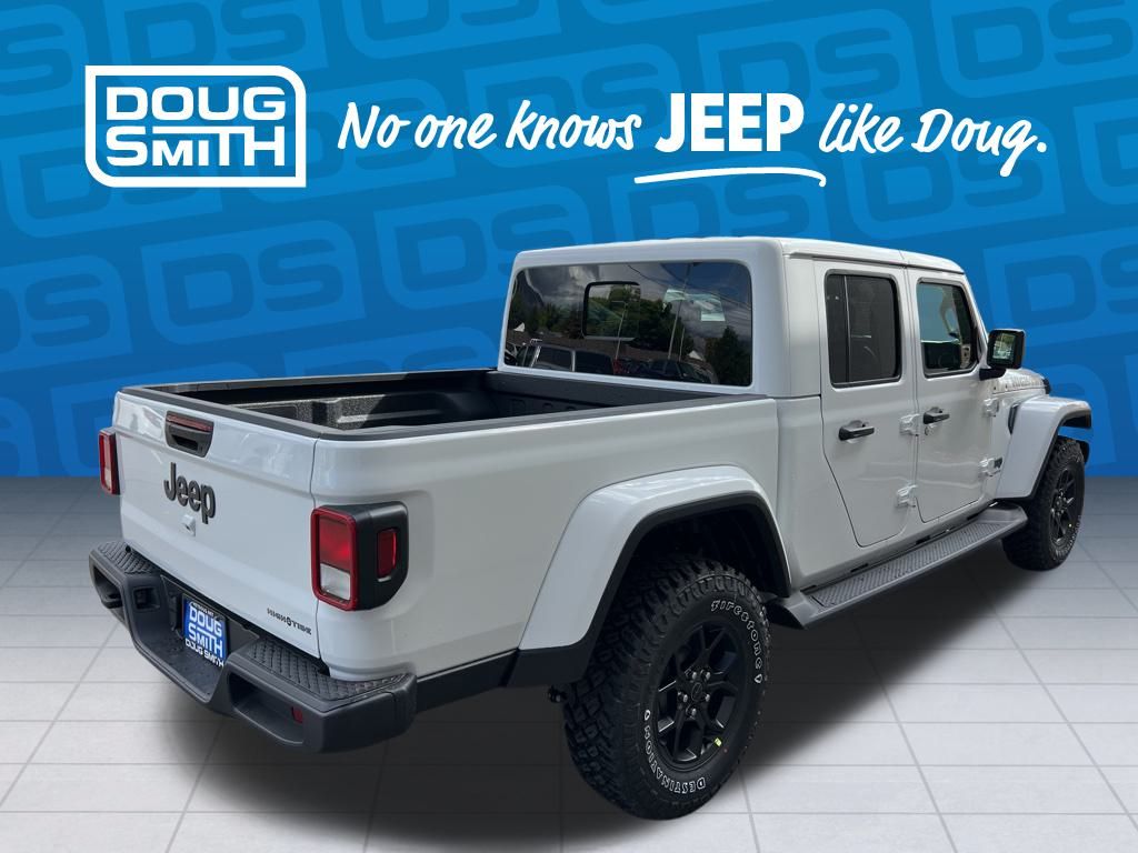 Bright White Clearcoat 2025 Jeep Gladiator High Tide 4WD 8-Speed Automatic 3.6L V6 24V VVT Price includes: $1000 - 2025 West BC Bonus Cash . Exp. 03/02/2026 $2250 - 2025 National Retail Bonus Cash . Exp. 03/02/2026 - Advertised Price reflects a $1,500 Financing Discount. To qualify for this discount, customer must secure credit approval and finance with a dealership lender. Cash purchases or outside financing will void the discount, increasing the final price by $1,500. Exp. 02/28/2026 - See Doug Smith CDJR for full details. - Sale Price Includes: $1,500 Trade-In Allowance Incentive Program for customers that trade in a 2015 or newer passenger vehicle with 100,000 miles or less. - Offer Exp. 02/28/2026 - See Doug Smith CDJR for full details.