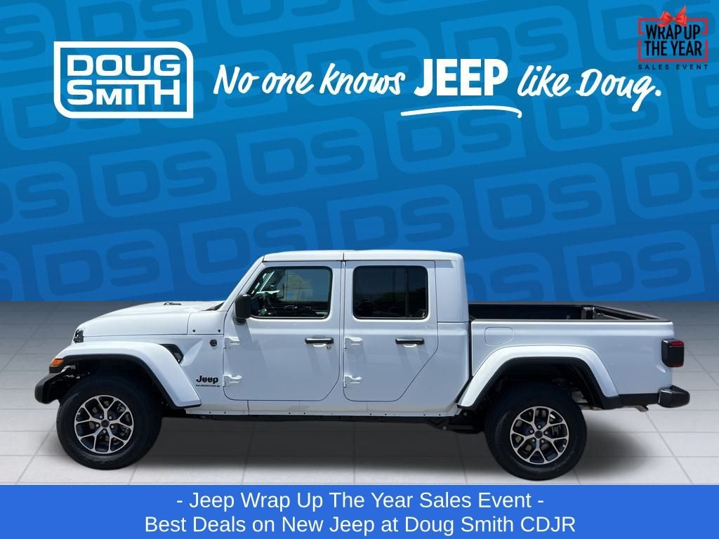 Bright White Clearcoat 2025 Jeep Gladiator Sport S 4WD 8-Speed Automatic 3.6L V6 24V VVT Price includes: $1000 - 2025 West BC Retail Bonus Cash . Exp. 01/05/2026 $1500 - 2025 National Select Inventory Bonus Cash. Exp. 01/05/2026 $2000 - 2025 National Holiday Select Inventory Bonus Cash. Exp. 01/05/2026 $2250 - 2025 National Bonus Cash . Exp. 01/05/2026 - Sale Price Includes: $1,500 Trade-In Allowance Incentive Program for customers that trade in a 2015 or newer passenger vehicle with 100,000 miles or less. - Offer Exp. 01/05/2026 - See Doug Smith CDJR for full details. - Advertised Price reflects a $1,500 Financing Discount. To qualify for this discount, customer must secure credit approval and finance with a dealership lender. Cash purchases or outside financing will void the discount, increasing the final price by $1,500. Exp. 01/05/2026 - See Doug Smith CDJR for full details.