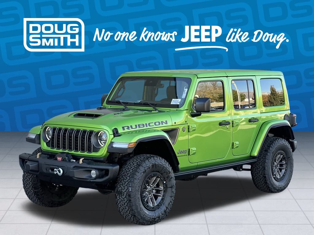 Mojito Clearcoat 2025 Jeep Wrangler Rubicon 392 4WD 8-Speed Automatic SRT HEMI 6.4L V8 MDS Price includes: $2000 - 2025 National Select Inventory Bonus Cash. Exp. 03/02/2026 - Advertised Price reflects a $1,500 Financing Discount. To qualify for this discount, customer must secure credit approval and finance with a dealership lender. Cash purchases or outside financing will void the discount, increasing the final price by $1,500. Exp. 02/28/2026 - See Doug Smith CDJR for full details. - Sale Price Includes: $1,500 Trade-In Allowance Incentive Program for customers that trade in a 2015 or newer passenger vehicle with 100,000 miles or less. - Offer Exp. 02/28/2026 - See Doug Smith CDJR for full details.