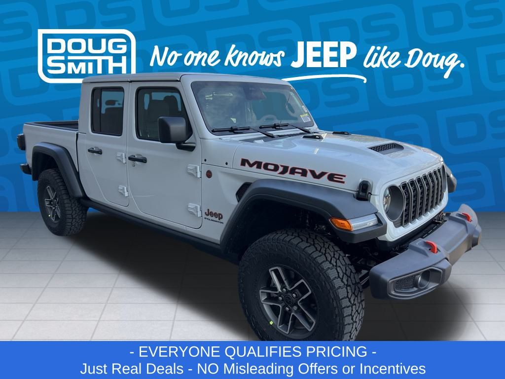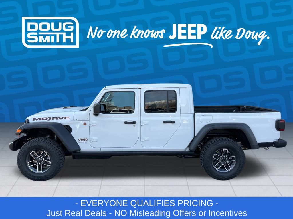 Bright White Clearcoat 2026 Jeep Gladiator Mojave 4WD 8-Speed Automatic 3.6L V6 24V VVT Price includes: - Advertised Price reflects a $1,500 Financing Discount. To qualify for this discount, customer must secure credit approval and finance with a dealership lender. Cash purchases or outside financing will void the discount, increasing the final price by $1,500. Exp. 02/28/2026 - See Doug Smith CDJR for full details. - Sale Price Includes: $1,500 Trade-In Allowance Incentive Program for customers that trade in a 2015 or newer passenger vehicle with 100,000 miles or less. - Offer Exp. 02/28/2026 - See Doug Smith CDJR for full details.