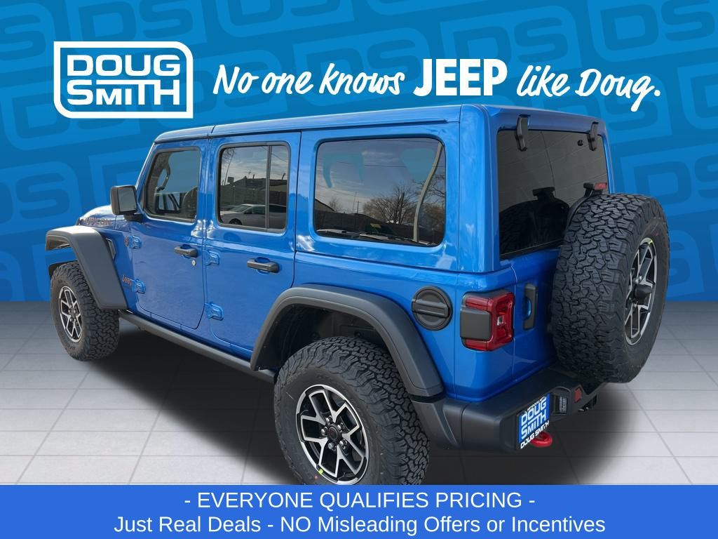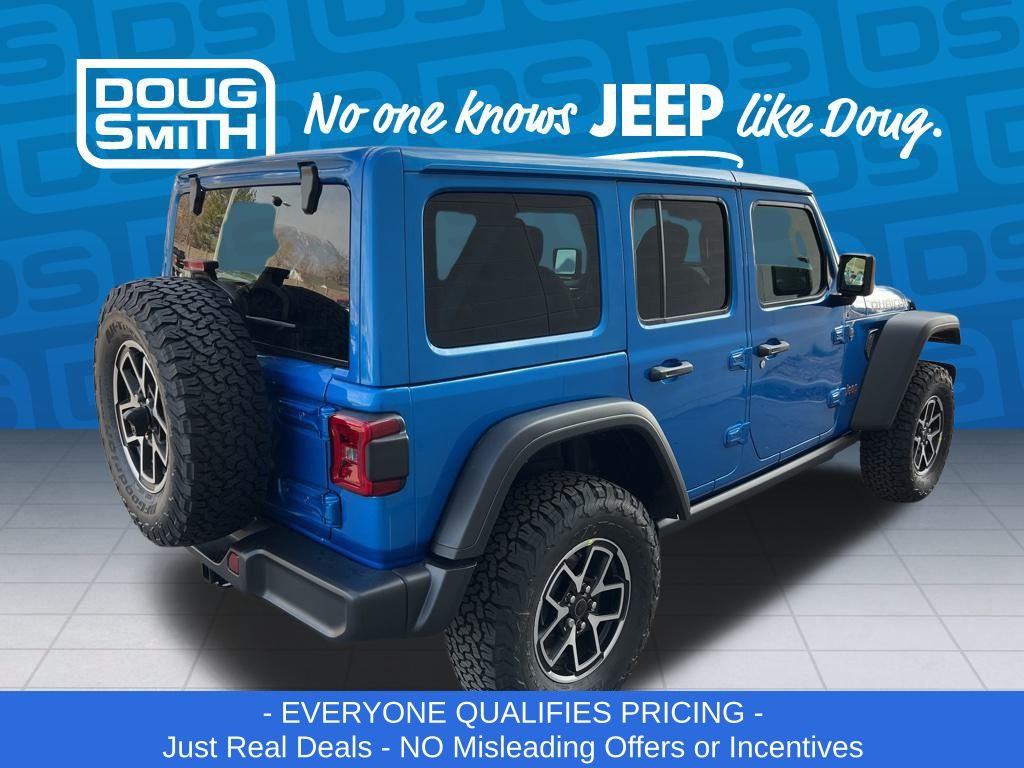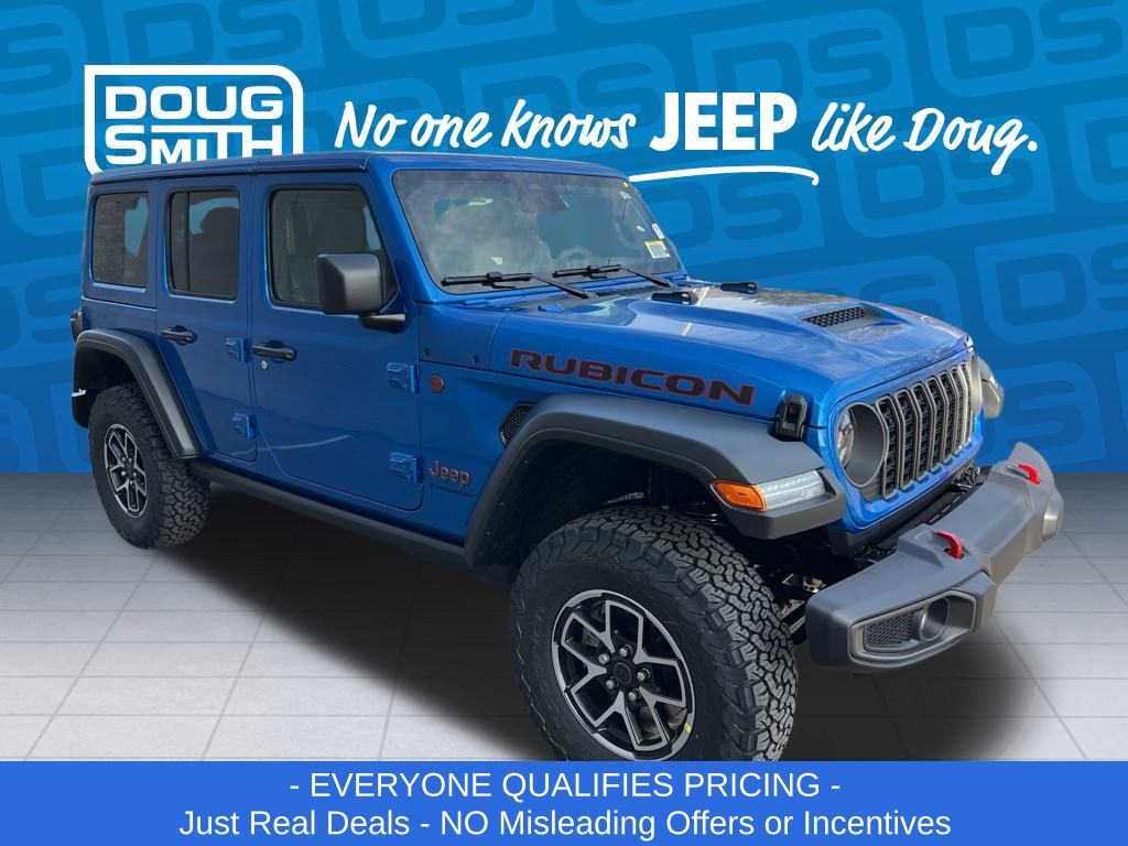 Hydro Blue Pearl Coat 2026 Jeep Wrangler Rubicon 4WD 8-Speed Automatic 3.6L V6 24V VVT Price includes: - Advertised Price reflects a $1,500 Financing Discount. To qualify for this discount, customer must secure credit approval and finance with a dealership lender. Cash purchases or outside financing will void the discount, increasing the final price by $1,500. Exp. 02/28/2026 - See Doug Smith CDJR for full details. - Sale Price Includes: $1,500 Trade-In Allowance Incentive Program for customers that trade in a 2015 or newer passenger vehicle with 100,000 miles or less. - Offer Exp. 02/28/2026 - See Doug Smith CDJR for full details.