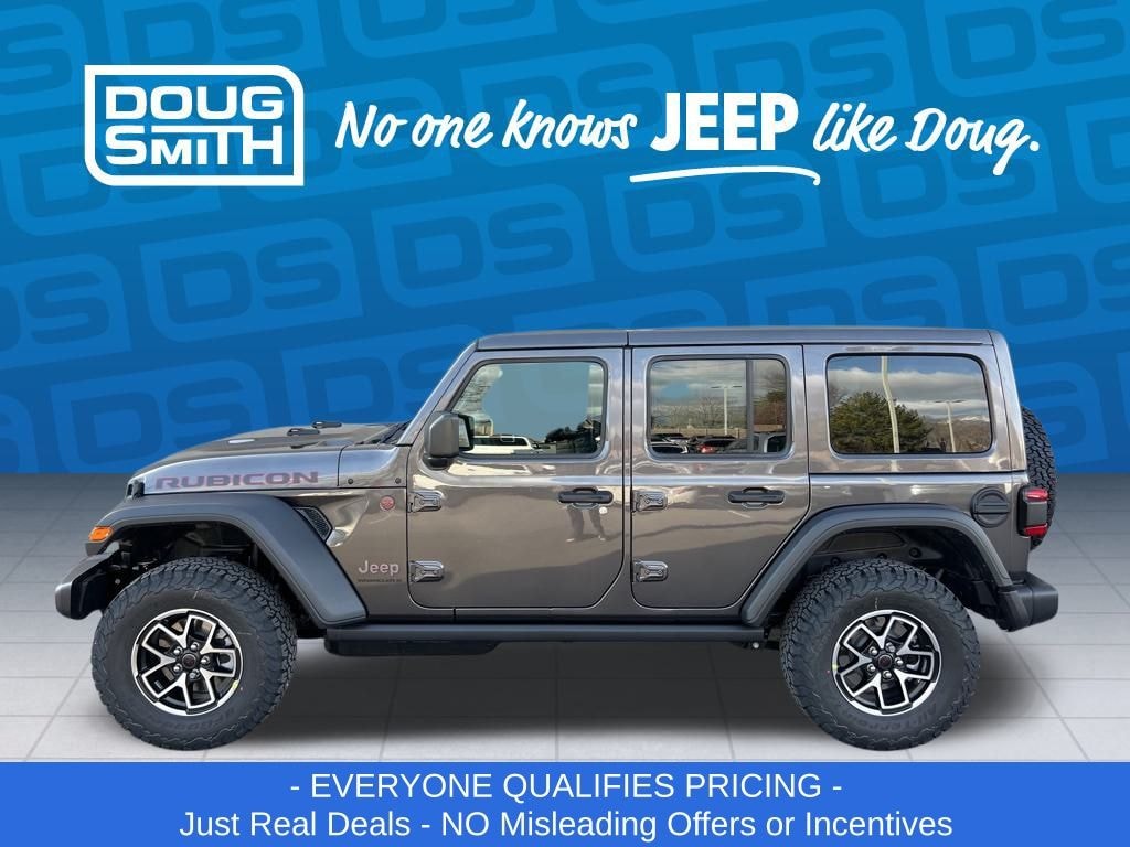 granite crystal metallic clearcoat 2026 Jeep Wrangler Rubicon 4WD 8-Speed Automatic 3.6L V6 24V VVT - Sale Price Includes: $1,500 Trade-In Allowance Incentive Program for customers that trade in a 2015 or newer passenger vehicle with 100,000 miles or less. - Offer Exp. 01/31/2026 - See Doug Smith CDJR for full details. - Advertised Price reflects a $1,500 Financing Discount. To qualify for this discount, customer must secure credit approval and finance with a dealership lender. Cash purchases or outside financing will void the discount, increasing the final price by $1,500. Exp. 01/31/2026 - See Doug Smith CDJR for full details.