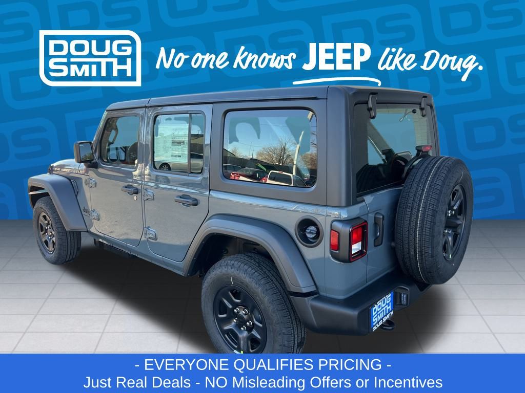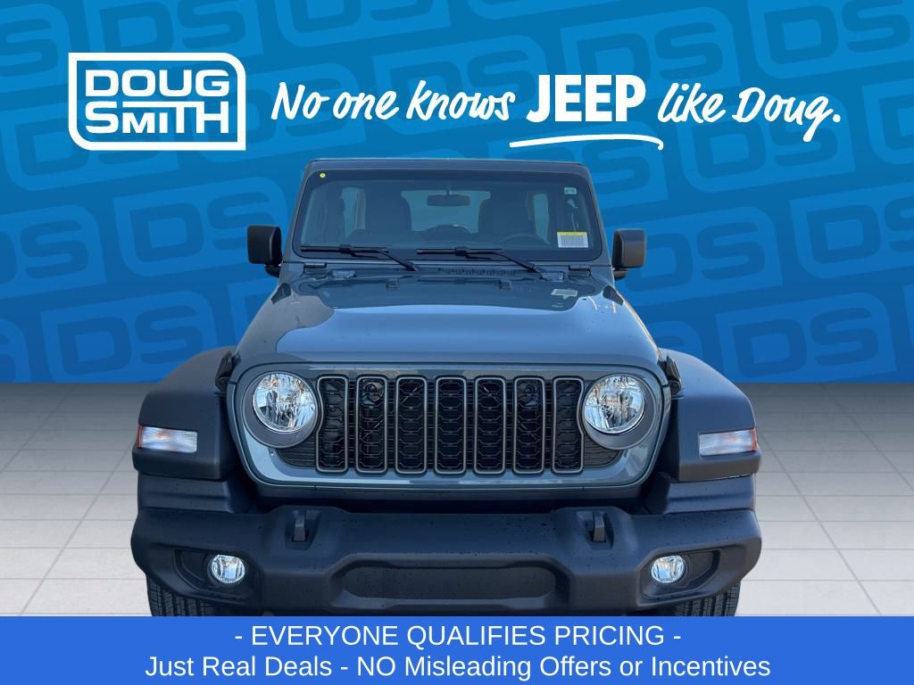Anvil Clear Coat 2026 Jeep Wrangler Sport 4WD 8-Speed Automatic 3.6L V6 24V VVT Price includes: - Advertised Price reflects a $1,500 Financing Discount. To qualify for this discount, customer must secure credit approval and finance with a dealership lender. Cash purchases or outside financing will void the discount, increasing the final price by $1,500. Exp. 02/28/2026 - See Doug Smith CDJR for full details. - Sale Price Includes: $1,500 Trade-In Allowance Incentive Program for customers that trade in a 2015 or newer passenger vehicle with 100,000 miles or less. - Offer Exp. 02/28/2026 - See Doug Smith CDJR for full details.