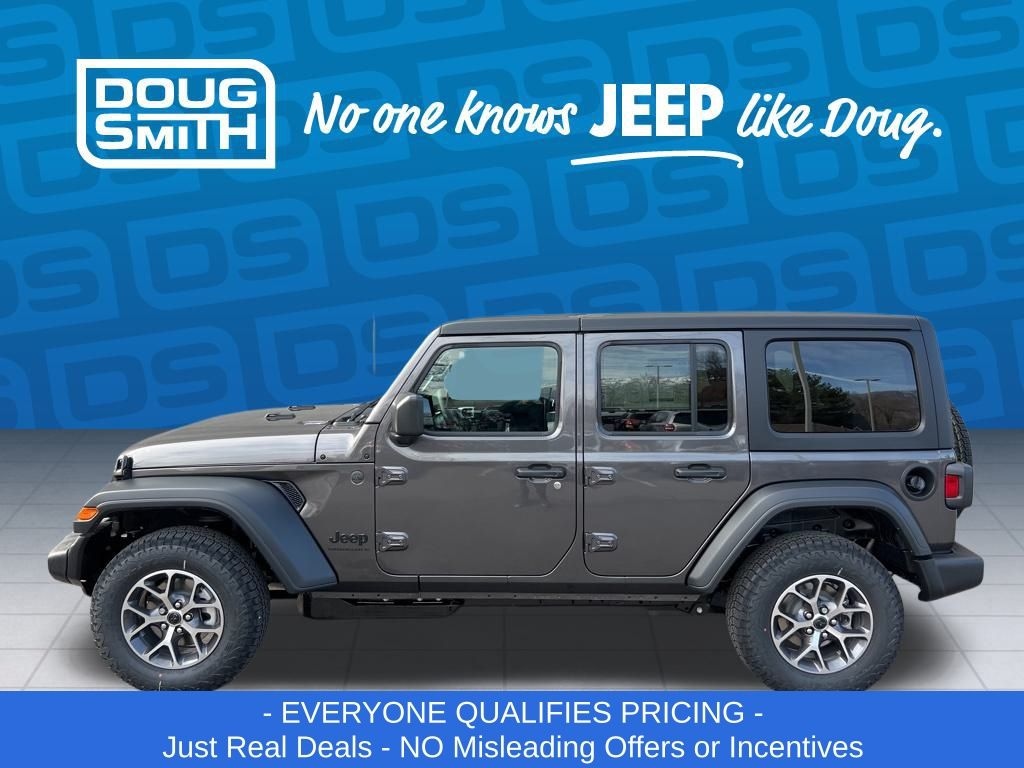 granite crystal metallic clearcoat 2026 Jeep Wrangler Sport S 4WD 8-Speed Automatic 3.6L V6 24V VVT - Sale Price Includes: $1,500 Trade-In Allowance Incentive Program for customers that trade in a 2015 or newer passenger vehicle with 100,000 miles or less. - Offer Exp. 01/31/2026 - See Doug Smith CDJR for full details. - Advertised Price reflects a $1,500 Financing Discount. To qualify for this discount, customer must secure credit approval and finance with a dealership lender. Cash purchases or outside financing will void the discount, increasing the final price by $1,500. Exp. 01/31/2026 - See Doug Smith CDJR for full details.