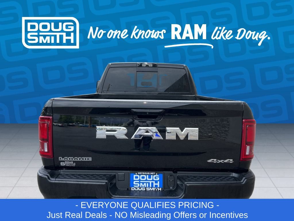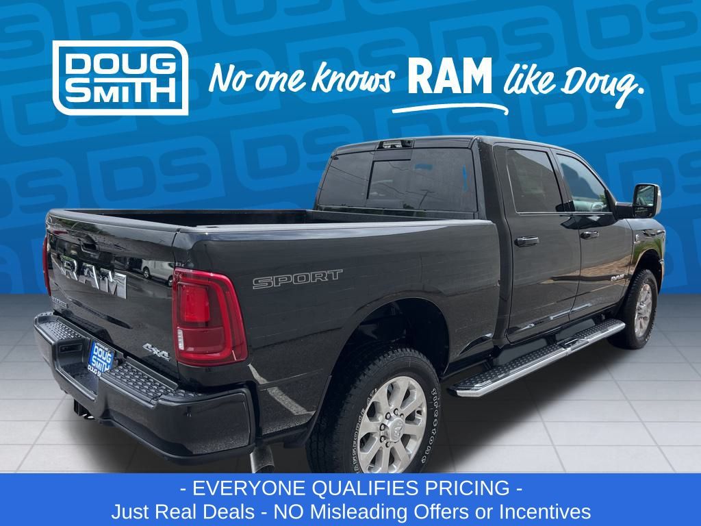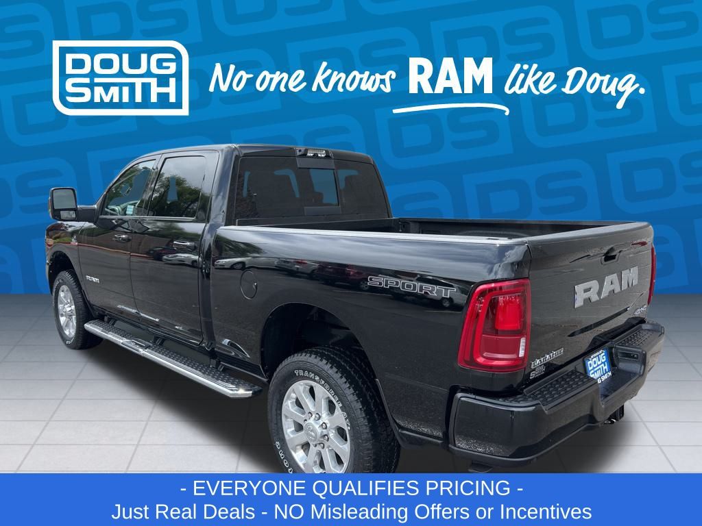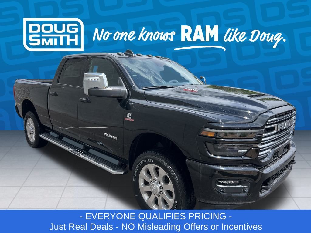Diamond Black Crystal Pearlcoat 2025 Ram 2500 Laramie 4WD 8-Speed Automatic 6.7L I6 Price includes: $2000 - 2025 National Bonus Cash . Exp. 03/02/2026 $2000 - 2025 National Select Inventory Bonus Cash. Exp. 03/02/2026 - Advertised Price reflects a $1,500 Financing Discount. To qualify for this discount, customer must secure credit approval and finance with a dealership lender. Cash purchases or outside financing will void the discount, increasing the final price by $1,500. Exp. 02/28/2026 - See Doug Smith CDJR for full details. - Sale Price Includes: $1,500 Trade-In Allowance Incentive Program for customers that trade in a 2015 or newer passenger vehicle with 100,000 miles or less. - Offer Exp. 02/28/2026 - See Doug Smith CDJR for full details.