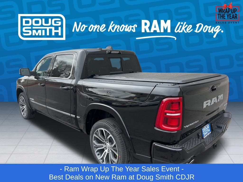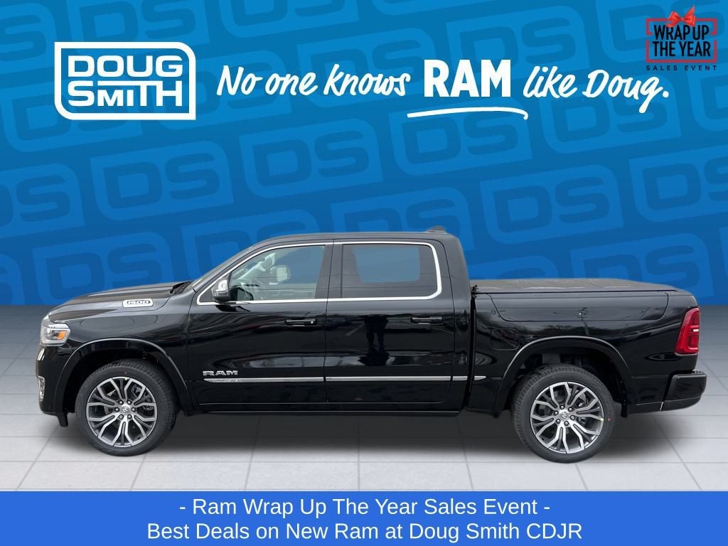 Diamond Black Crystal Pearlcoat 2026 Ram 1500 Tungsten 4WD 8-Speed Automatic 3.0L I6 - Sale Price Includes: $1,500 Trade-In Allowance Incentive Program for customers that trade in a 2015 or newer passenger vehicle with 100,000 miles or less. - Offer Exp. 01/05/2026 - See Doug Smith CDJR for full details. - Advertised Price reflects a $1,500 Financing Discount. To qualify for this discount, customer must secure credit approval and finance with a dealership lender. Cash purchases or outside financing will void the discount, increasing the final price by $1,500. Exp. 01/05/2026 - See Doug Smith CDJR for full details.