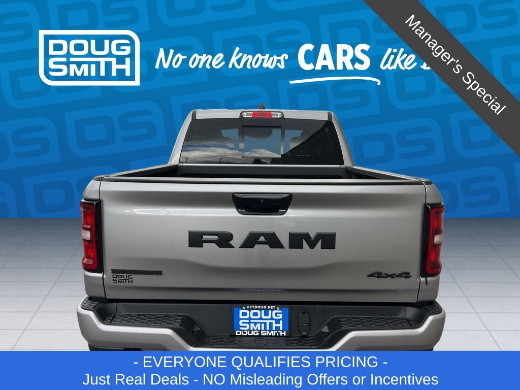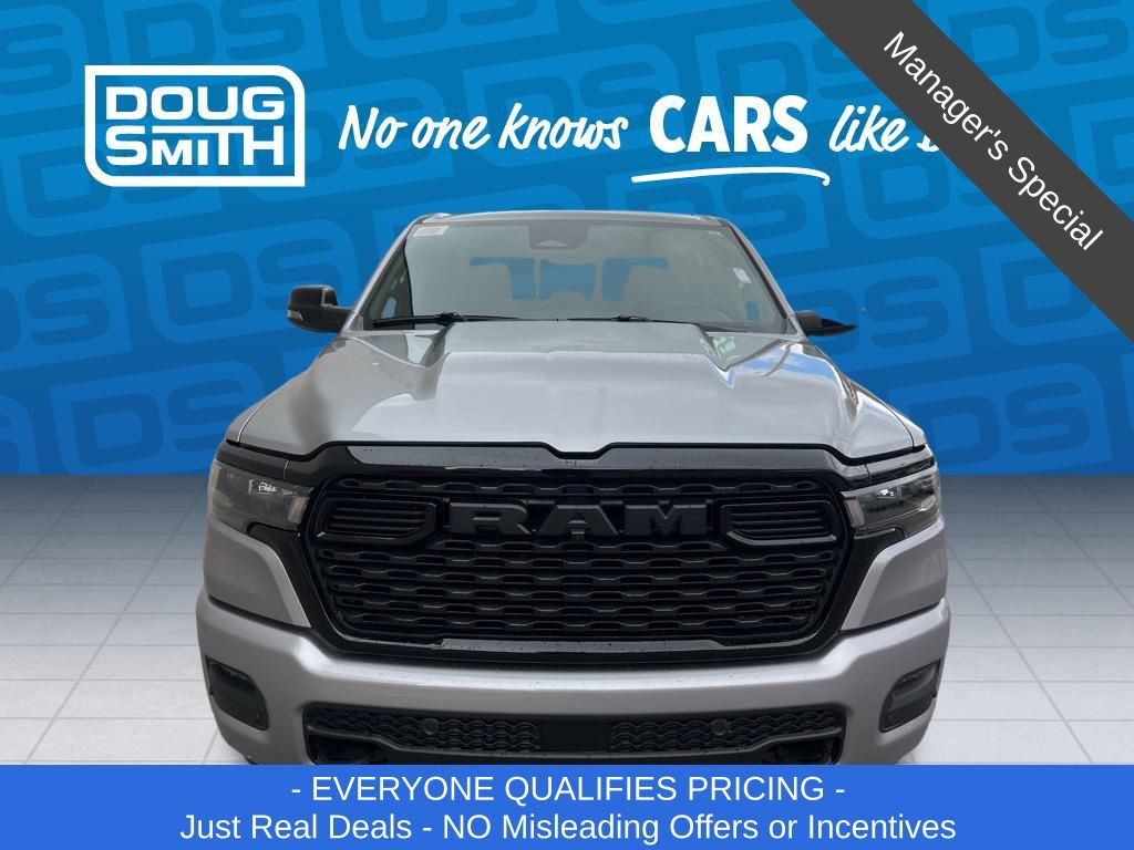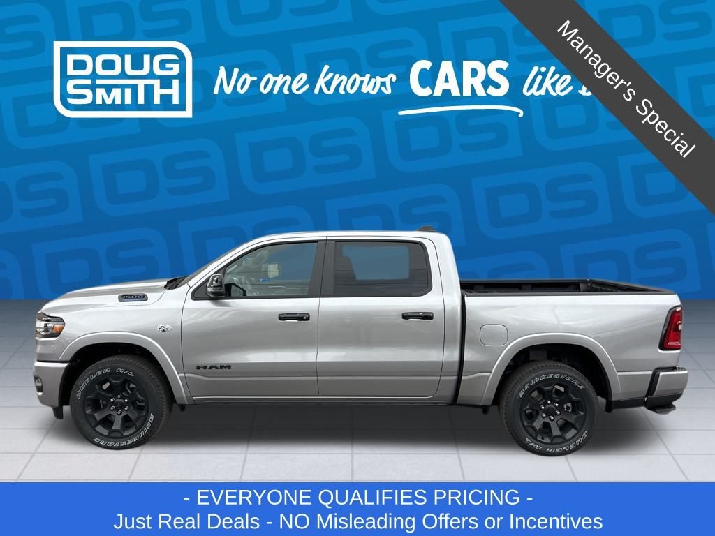 Billet Silver Metallic Clearcoat 2026 Ram 1500 Big Horn/Lone Star 4WD 8-Speed Automatic HEMI 5.7L V8 Multi Displacement VVT eTorque Price includes: $3500 - 2026 National Retail Consumer Cash . Exp. 03/02/2026 - Advertised Price reflects a $1,500 Financing Discount. To qualify for this discount, customer must secure credit approval and finance with a dealership lender. Cash purchases or outside financing will void the discount, increasing the final price by $1,500. Exp. 02/28/2026 - See Doug Smith CDJR for full details. - Sale Price Includes: $1,500 Trade-In Allowance Incentive Program for customers that trade in a 2015 or newer passenger vehicle with 100,000 miles or less. - Offer Exp. 02/28/2026 - See Doug Smith CDJR for full details.