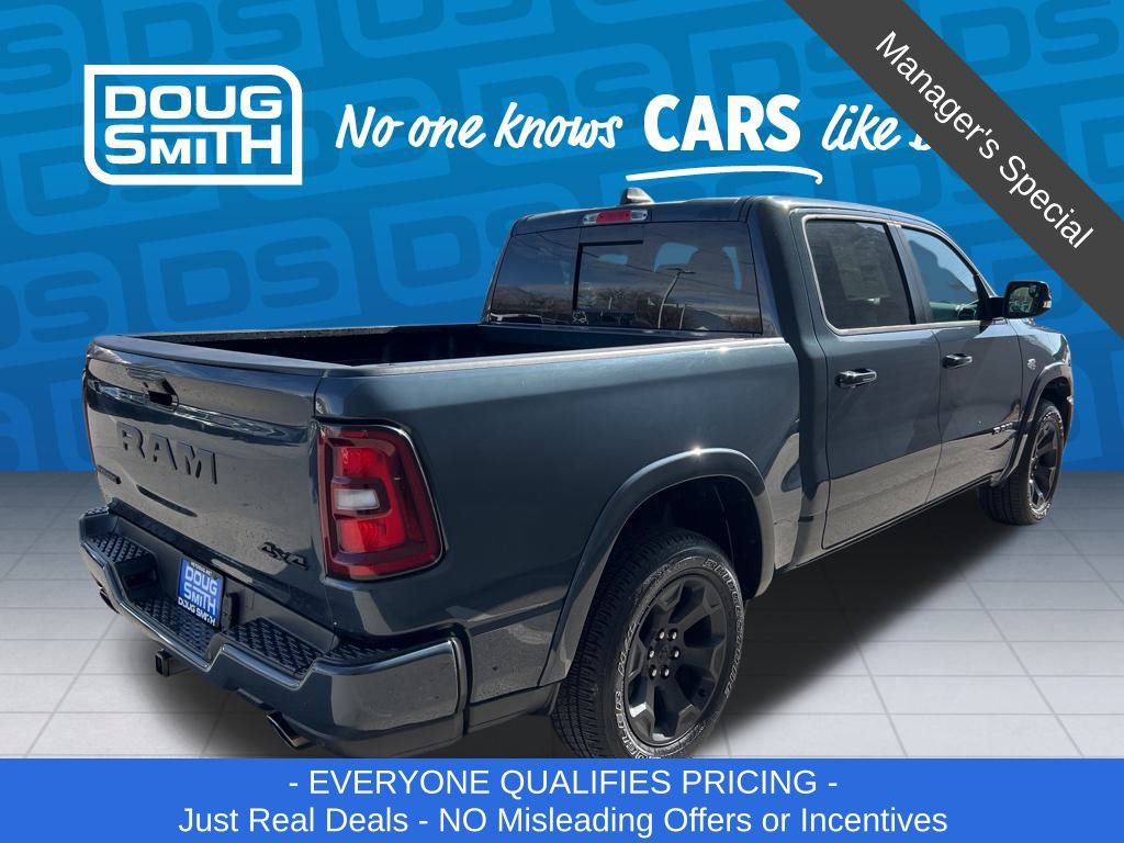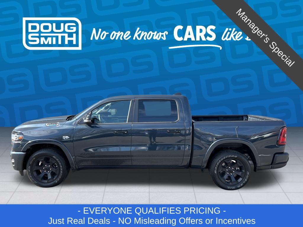 Forged Blue Metallic 2026 Ram 1500 Big Horn/Lone Star 4WD 8-Speed Automatic HEMI 5.7L V8 Multi Displacement VVT eTorque Price includes: $3500 - 2026 National Retail Consumer Cash . Exp. 03/02/2026 - Advertised Price reflects a $1,500 Financing Discount. To qualify for this discount, customer must secure credit approval and finance with a dealership lender. Cash purchases or outside financing will void the discount, increasing the final price by $1,500. Exp. 02/28/2026 - See Doug Smith CDJR for full details. - Sale Price Includes: $1,500 Trade-In Allowance Incentive Program for customers that trade in a 2015 or newer passenger vehicle with 100,000 miles or less. - Offer Exp. 02/28/2026 - See Doug Smith CDJR for full details.