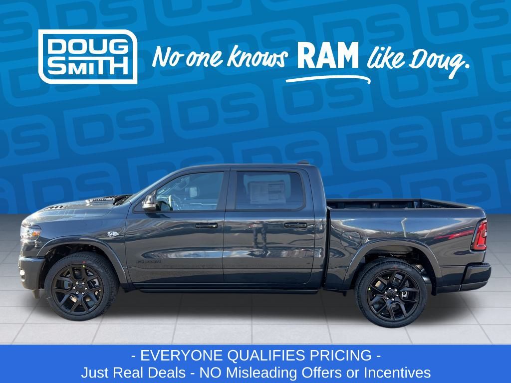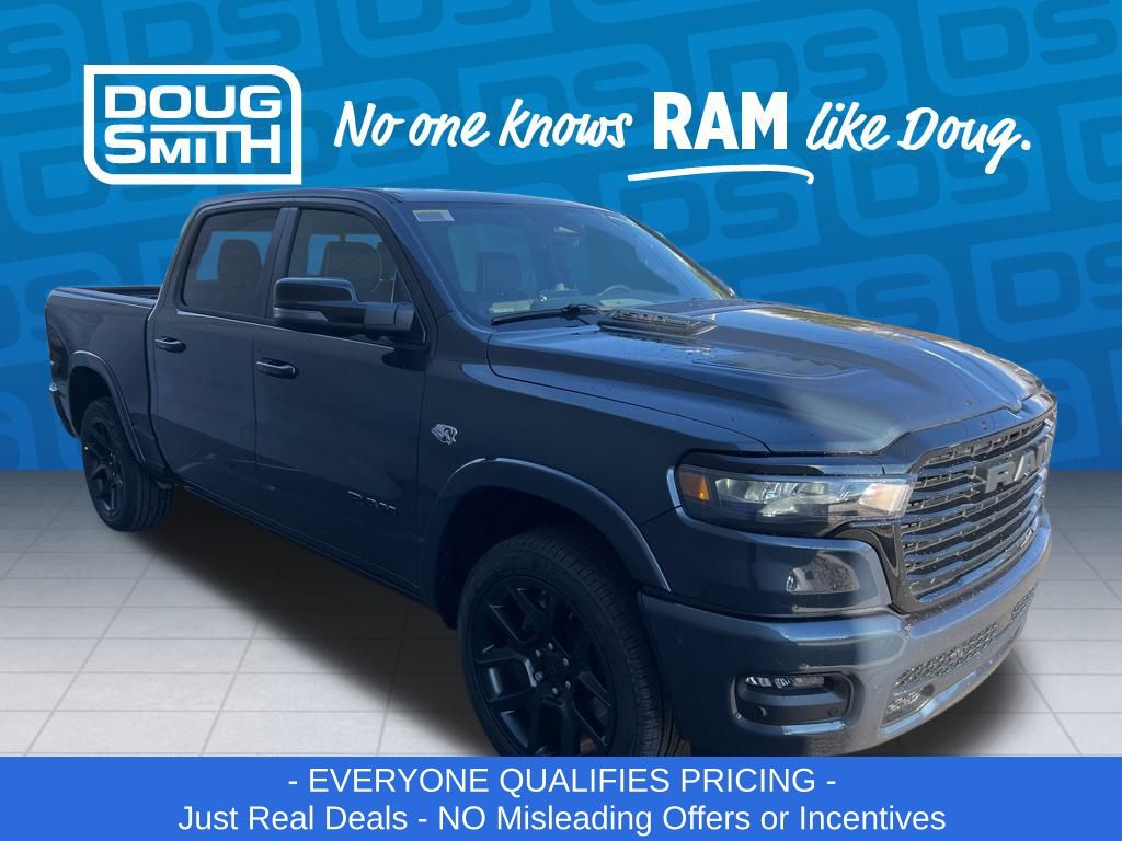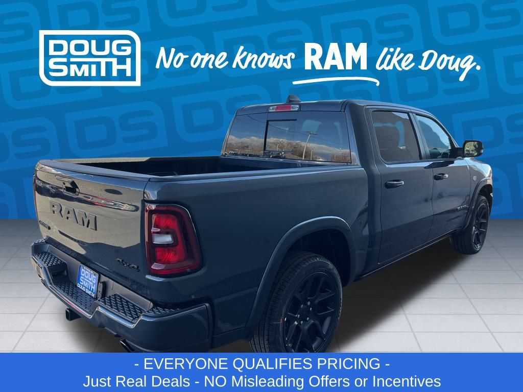 Forged Blue Metallic 2026 Ram 1500 Laramie 4WD 8-Speed Automatic HEMI 5.7L V8 Multi Displacement VVT eTorque Price includes: $1000 - 2026 National Bonus Cash . Exp. 03/02/2026 $1000 - 2026 West BC SFS Bonus Cash . Exp. 03/02/2026 $2000 - 2026 National Select Inventory Bonus Cash. Exp. 03/02/2026 $3500 - 2026 National Retail Consumer Cash . Exp. 03/02/2026 - Advertised Price reflects a $1,500 Financing Discount. To qualify for this discount, customer must secure credit approval and finance with a dealership lender. Cash purchases or outside financing will void the discount, increasing the final price by $1,500. Exp. 02/28/2026 - See Doug Smith CDJR for full details. - Sale Price Includes: $1,500 Trade-In Allowance Incentive Program for customers that trade in a 2015 or newer passenger vehicle with 100,000 miles or less. - Offer Exp. 02/28/2026 - See Doug Smith CDJR for full details.