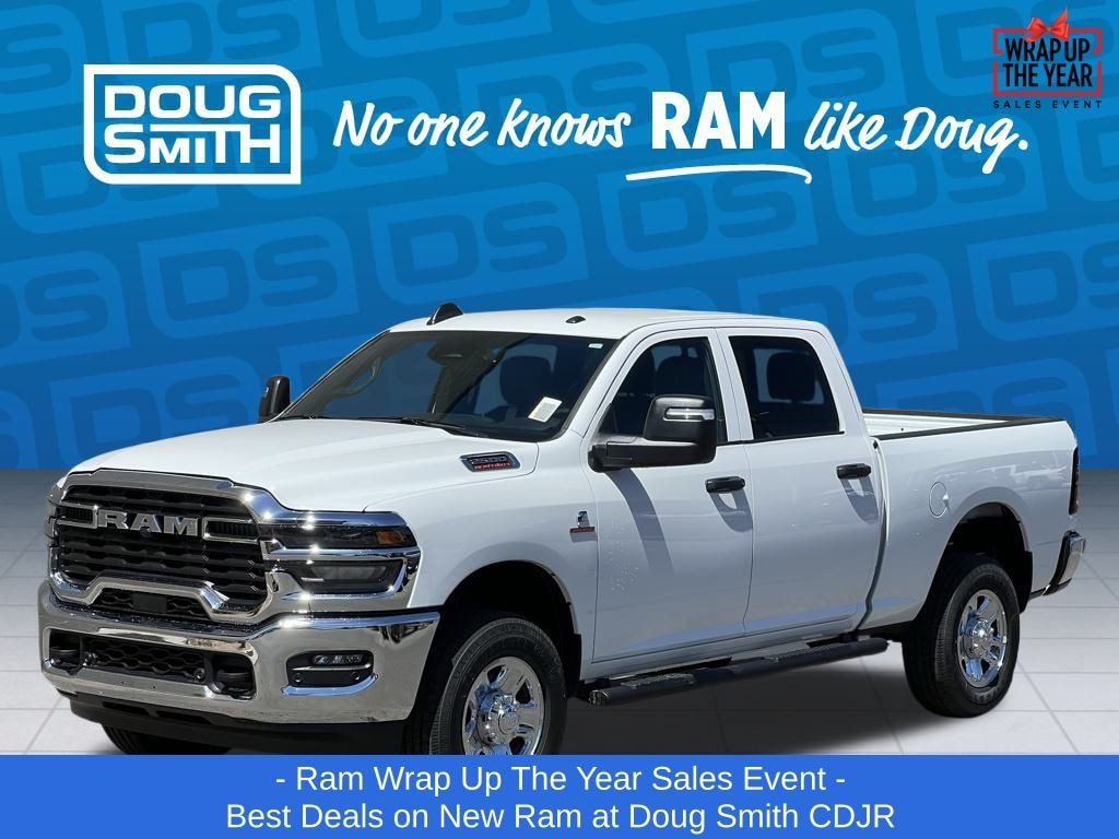 Bright White Clearcoat 2026 Ram 2500 Tradesman 4WD 8-Speed Automatic 6.7L I6 Price includes: $1000 - 2026 National Bonus Cash . Exp. 01/05/2026 $2000 - 2026 National Holiday Select Inventory Bonus Cash. Exp. 01/05/2026 - Sale Price Includes: $1,500 Trade-In Allowance Incentive Program for customers that trade in a 2015 or newer passenger vehicle with 100,000 miles or less. - Offer Exp. 01/05/2026 - See Doug Smith CDJR for full details. - Advertised Price reflects a $1,500 Financing Discount. To qualify for this discount, customer must secure credit approval and finance with a dealership lender. Cash purchases or outside financing will void the discount, increasing the final price by $1,500. Exp. 01/05/2026 - See Doug Smith CDJR for full details.