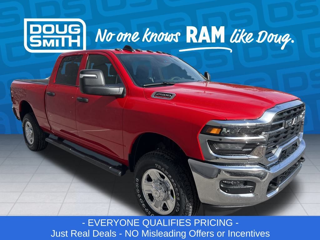 Flame Red Clearcoat 2026 Ram 2500 Tradesman 4WD 8-Speed Automatic 6.4L V8 Price includes: $1000 - 2026 National Bonus Cash . Exp. 03/02/2026 - Advertised Price reflects a $1,500 Financing Discount. To qualify for this discount, customer must secure credit approval and finance with a dealership lender. Cash purchases or outside financing will void the discount, increasing the final price by $1,500. Exp. 02/28/2026 - See Doug Smith CDJR for full details. - Sale Price Includes: $1,500 Trade-In Allowance Incentive Program for customers that trade in a 2015 or newer passenger vehicle with 100,000 miles or less. - Offer Exp. 02/28/2026 - See Doug Smith CDJR for full details.