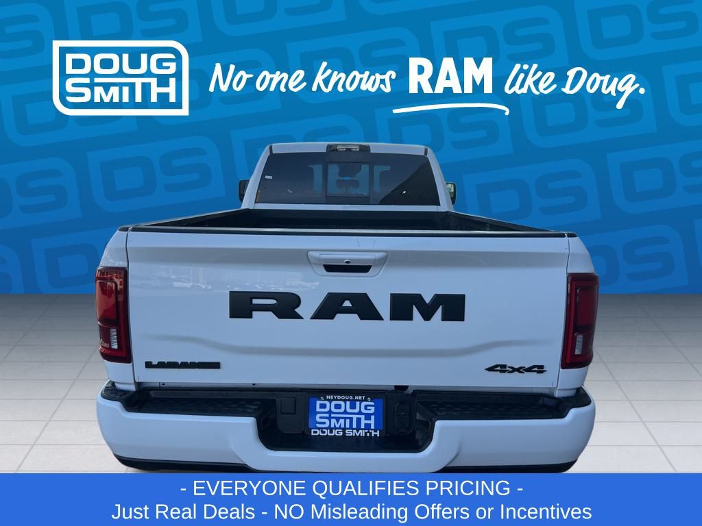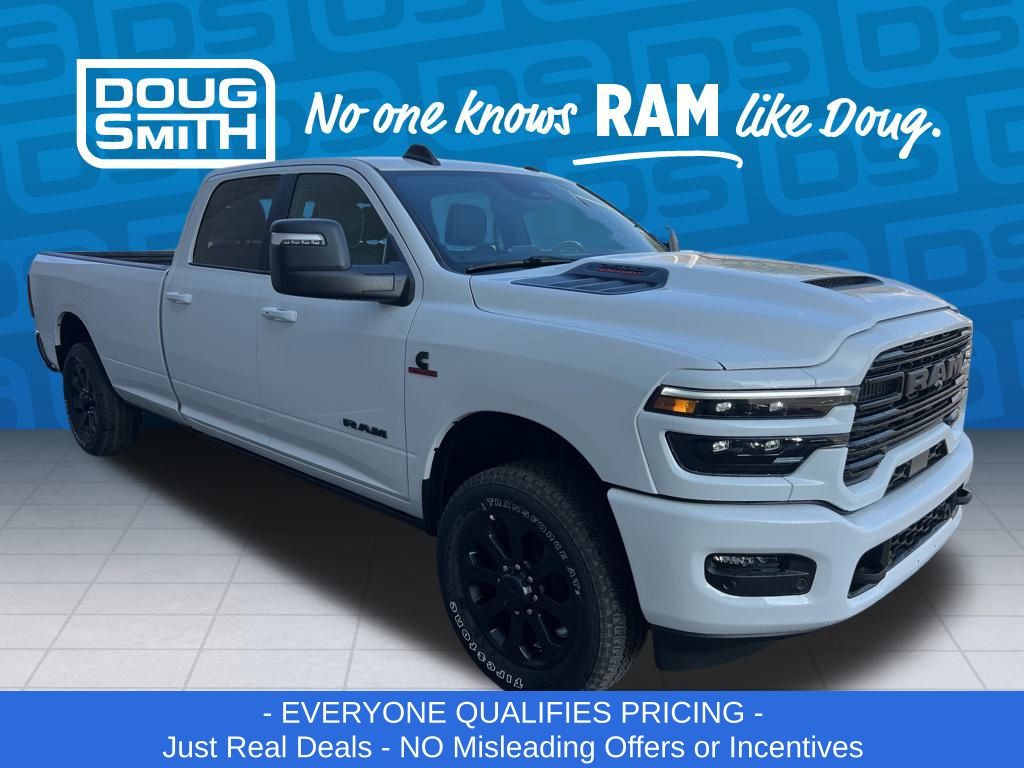 Bright White Clearcoat 2026 Ram 2500 Laramie 4WD 8-Speed Automatic 6.7L I6 Price includes: $1000 - 2026 National Bonus Cash . Exp. 03/02/2026 - Advertised Price reflects a $1,500 Financing Discount. To qualify for this discount, customer must secure credit approval and finance with a dealership lender. Cash purchases or outside financing will void the discount, increasing the final price by $1,500. Exp. 02/28/2026 - See Doug Smith CDJR for full details. - Sale Price Includes: $1,500 Trade-In Allowance Incentive Program for customers that trade in a 2015 or newer passenger vehicle with 100,000 miles or less. - Offer Exp. 02/28/2026 - See Doug Smith CDJR for full details.