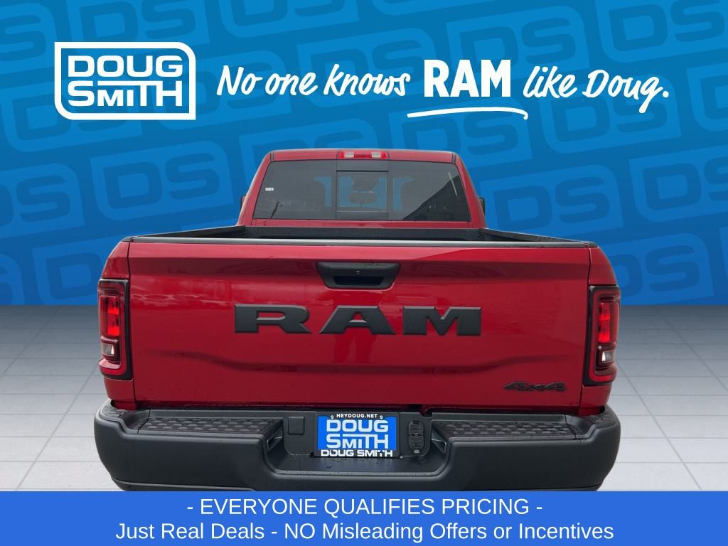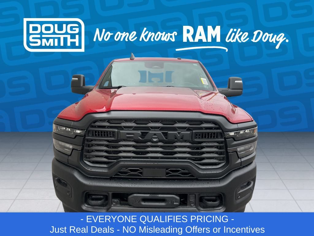 Molten Red Pearlcoat 2026 Ram 2500 Tradesman 4WD 8-Speed Automatic 6.4L V8 Price includes: $1000 - 2026 National Bonus Cash . Exp. 03/02/2026 $2000 - 2026 National Select Inventory Bonus Cash. Exp. 03/02/2026 - Advertised Price reflects a $1,500 Financing Discount. To qualify for this discount, customer must secure credit approval and finance with a dealership lender. Cash purchases or outside financing will void the discount, increasing the final price by $1,500. Exp. 02/28/2026 - See Doug Smith CDJR for full details. - Sale Price Includes: $1,500 Trade-In Allowance Incentive Program for customers that trade in a 2015 or newer passenger vehicle with 100,000 miles or less. - Offer Exp. 02/28/2026 - See Doug Smith CDJR for full details.