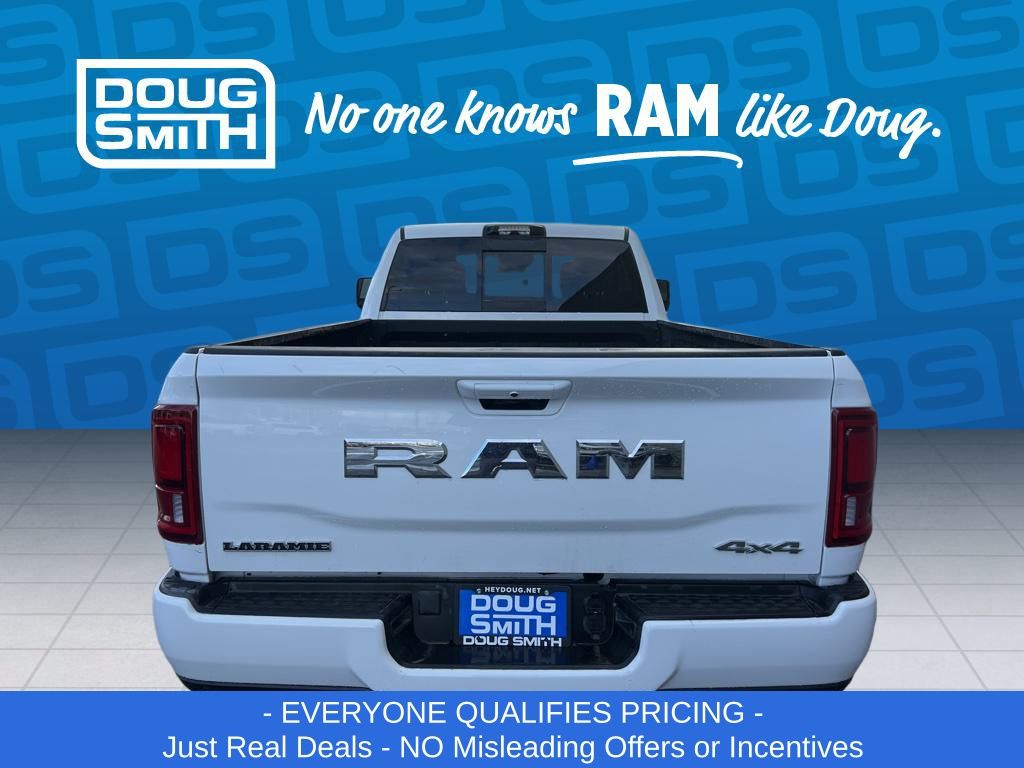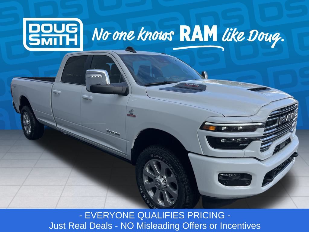 Bright White Clearcoat 2026 Ram 3500 Laramie 4WD 8-Speed Automatic 6.7L I6 Price includes: $1000 - 2026 National Bonus Cash . Exp. 03/02/2026 $2000 - 2026 National Select Inventory Bonus Cash. Exp. 03/02/2026 - Advertised Price reflects a $1,500 Financing Discount. To qualify for this discount, customer must secure credit approval and finance with a dealership lender. Cash purchases or outside financing will void the discount, increasing the final price by $1,500. Exp. 02/28/2026 - See Doug Smith CDJR for full details. - Sale Price Includes: $1,500 Trade-In Allowance Incentive Program for customers that trade in a 2015 or newer passenger vehicle with 100,000 miles or less. - Offer Exp. 02/28/2026 - See Doug Smith CDJR for full details.