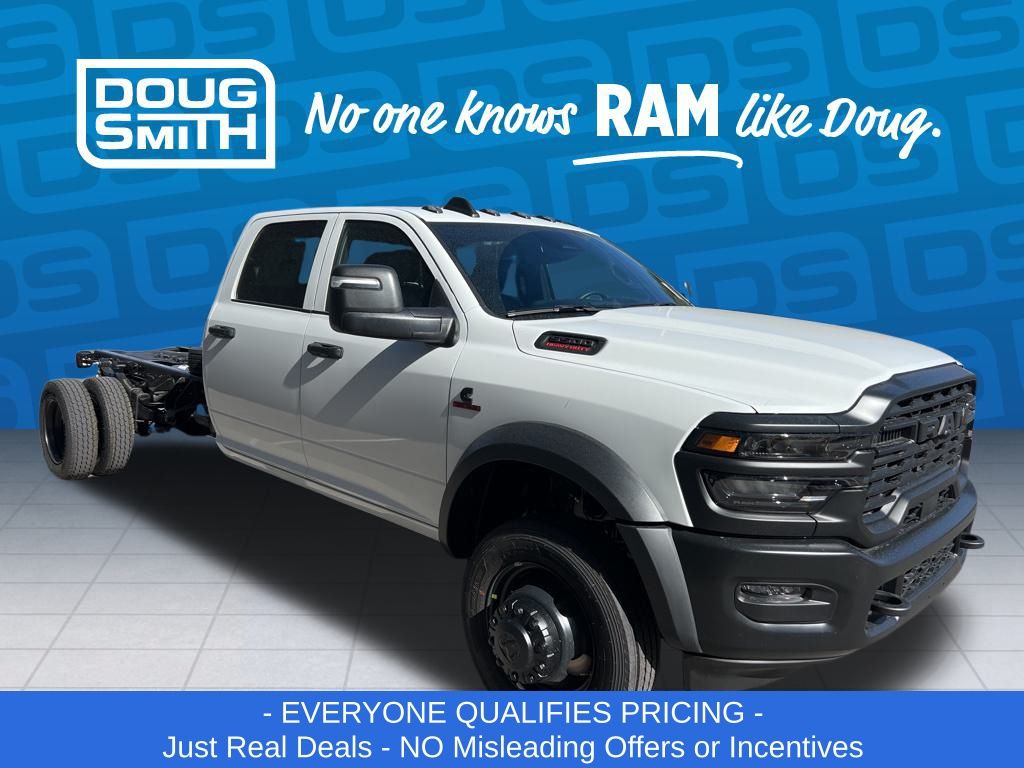 Bright White Clearcoat 2026 Ram 5500HD Tradesman 4WD 8-Speed Automatic Cummins 6.7L I6 Turbodiesel Price includes: $2500 - 2026 National Bonus Cash . Exp. 03/02/2026 - Advertised Price reflects a $1,500 Financing Discount. To qualify for this discount, customer must secure credit approval and finance with a dealership lender. Cash purchases or outside financing will void the discount, increasing the final price by $1,500. Exp. 02/28/2026 - See Doug Smith CDJR for full details. - Sale Price Includes: $1,500 Trade-In Allowance Incentive Program for customers that trade in a 2015 or newer passenger vehicle with 100,000 miles or less. - Offer Exp. 02/28/2026 - See Doug Smith CDJR for full details.