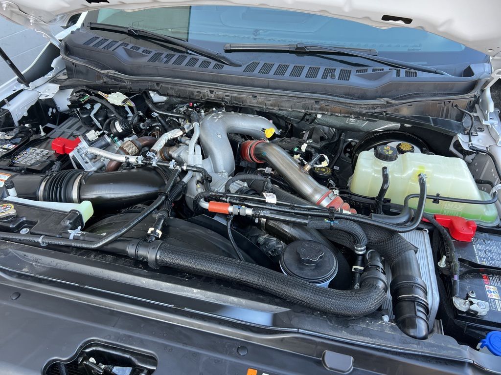Equipped with a robust 6.7L High Output Power Stroke V8 Diesel engine and a 10-Speed Automatic transmission, this F-350SD delivers exceptional performance and towing capacity. The Sport Appearance Package adds a touch of bold style with its dark fender badges, black tow hooks, and 20-inch dark-painted aluminum wheels.